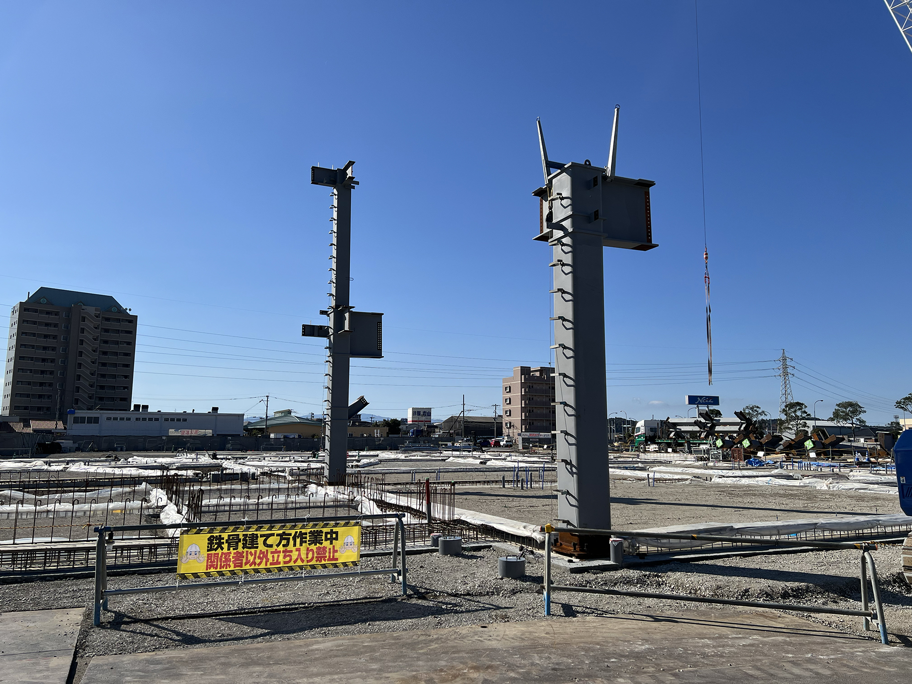 鉄骨工事が始まって1ヶ月ほど経ちますが、