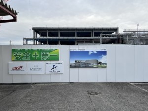 今日は仮囲いの外から、主役をそのCGのバックに添えて。